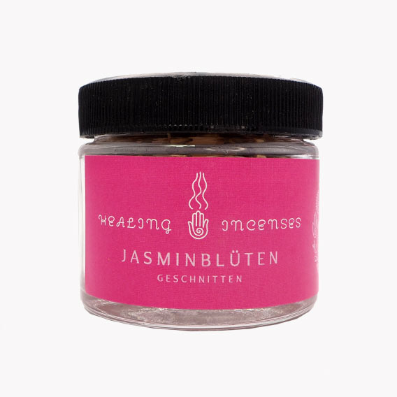 Um die Frische und Qualität zu bewahren, werden die Jasminblüten sorgfältig in einem Glas mit wiederverschließbarem Verschlussdeckel verpackt. Jedes Glas enthält 55ml des kostbaren Räucherwerks. Sie wurde liebevoll geerntet und verarbeitet.
