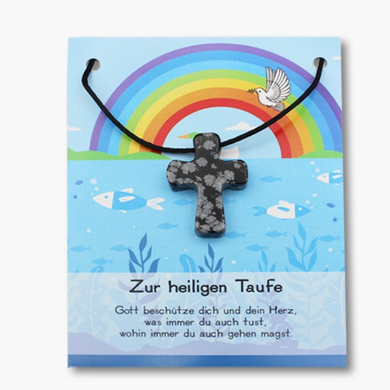 Kategorien: Edelsteinanhänger auf Karte, Schneeflockenobsidian, Taufe